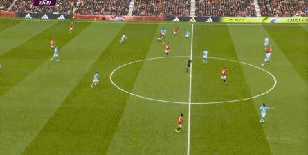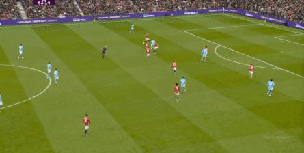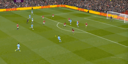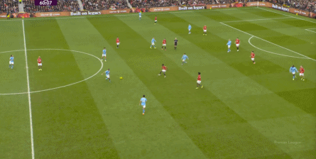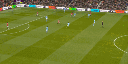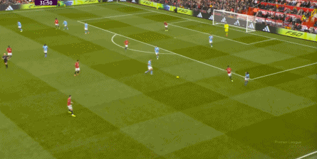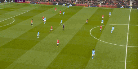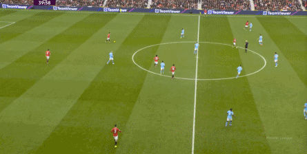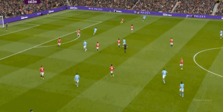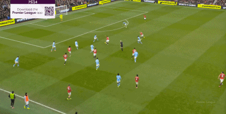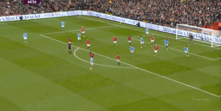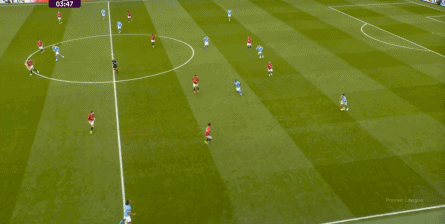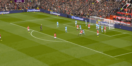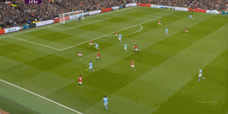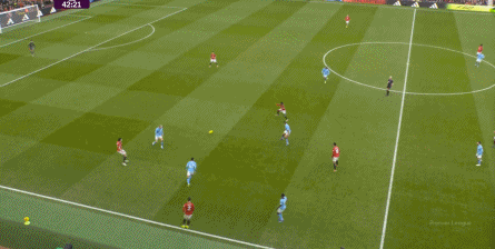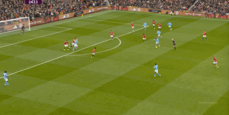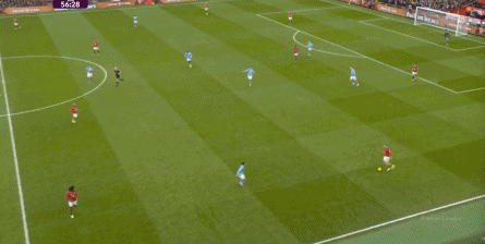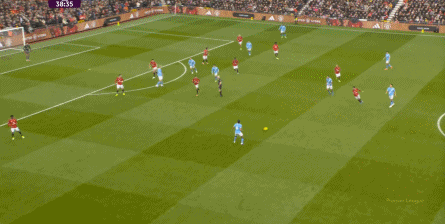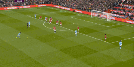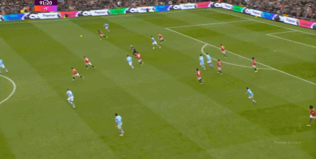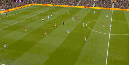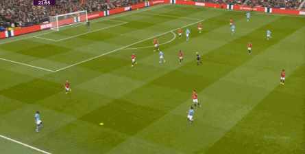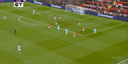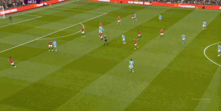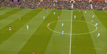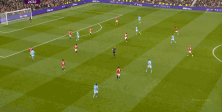 比如曼城曾在前场完成逼抢,让曼联需要在人员不整的情况下紧急防守: